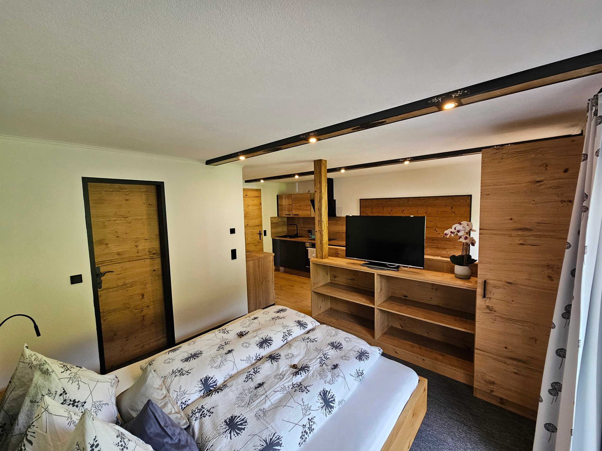 Feines Studio Apartment für 2 Personen mit Schlafzimmer, Wohnküche und Balkon. Größe ca. 30 m ².